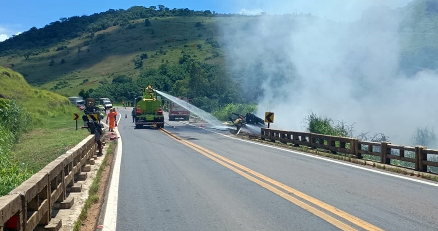 Equipes do Corpo de Bombeiros e EcoRioMinas se mobilizaram para controlar as chamas. Veja vídeo.