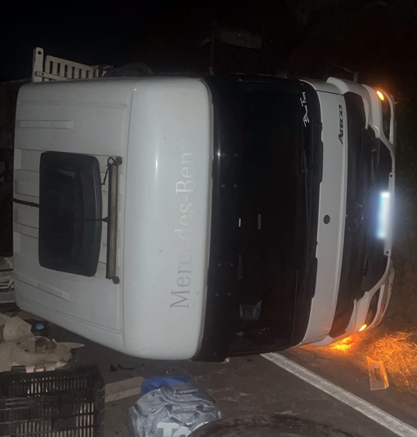 O caminhão Mercedes Benz Atego 3030 seguia sentido Juiz de Fora quando o motorista perdeu o controle da direção e o veículo tombou, deixando a pista completamente obstruída.