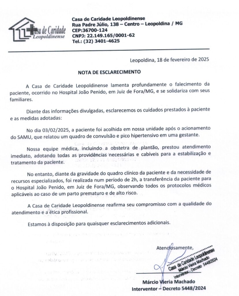 Na tarde desta terça-feira, 18 de fevereiro, sem informar se havia ou não anestesista na instituição no momento do fato, a Casa de Caridade Leopoldinense emitiu Nota de Esclarecimento. Confira: