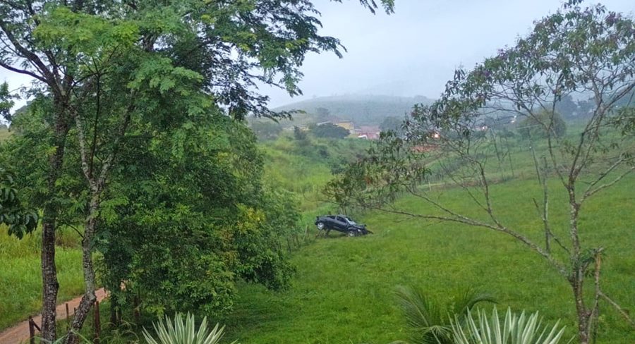 Segundo o Corpo de Bombeiros, o veículo caiu de uma ribanceira de aproximadamente 20 metros parando em cima de uma cerca localiza em uma estrada vicinal.