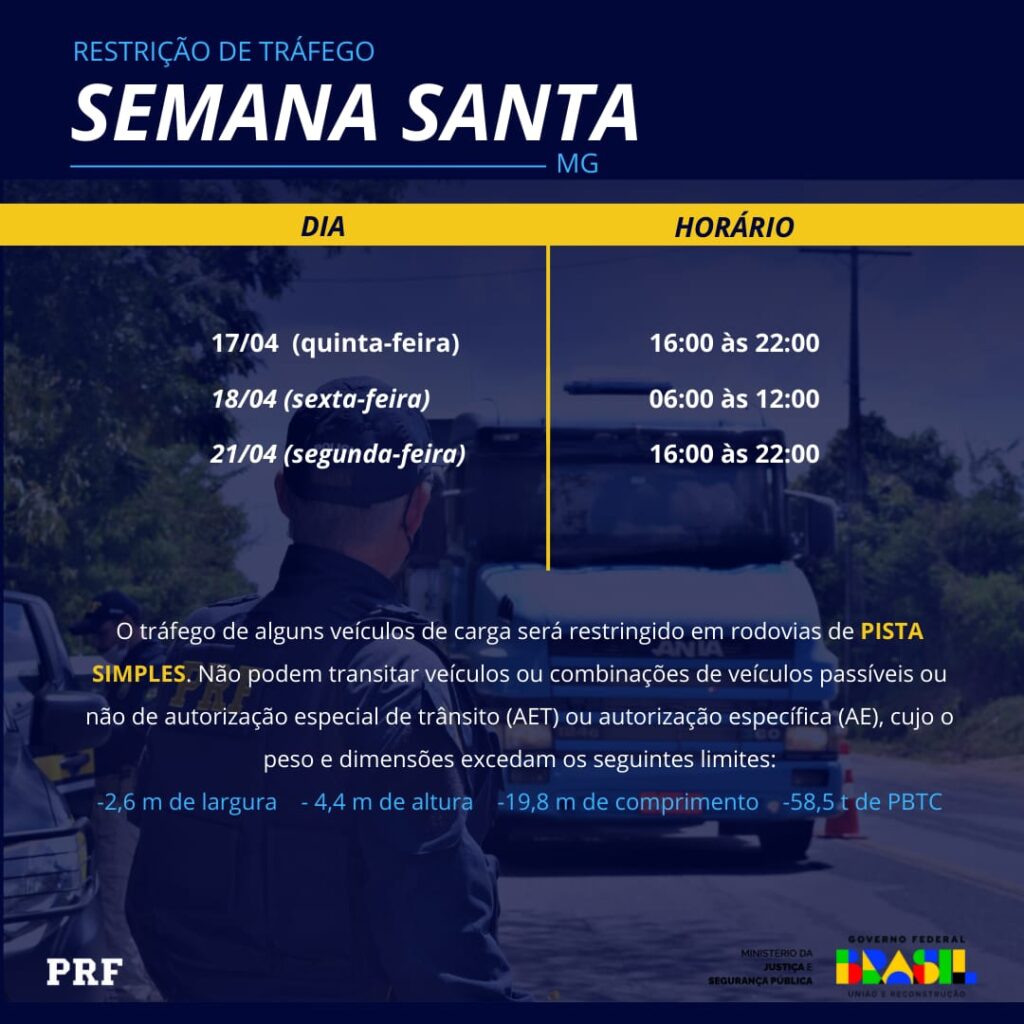 Durante o período da operação, haverá restrição de tráfego para veículos de carga com dimensões excedentes em rodovias federais de pista simples. A medida visa garantir maior fluidez ao trânsito e mais segurança para todos os usuários das rodovias.
