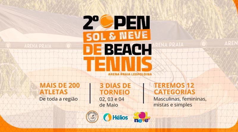 Acontece em Leopoldina neste final de semana o 2° Open Sol e Neve de Beach Tennis promovido pela Arena Praia. O evento tem início na sexta-feira, 2 de maio, e segue até o domingo (4).