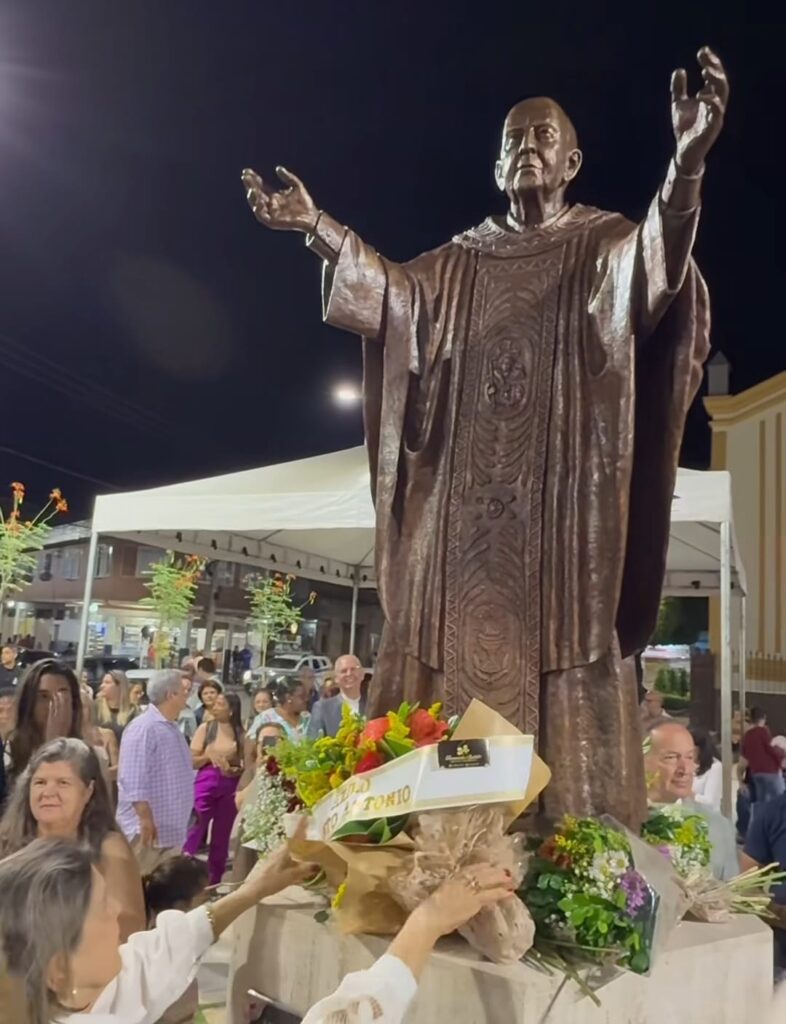 O momento mais marcante foi a inauguração da estátua em homenagem a Monsenhor Antonio José Chámel, uma das figuras religiosas mais queridas da história de Leopoldina.
