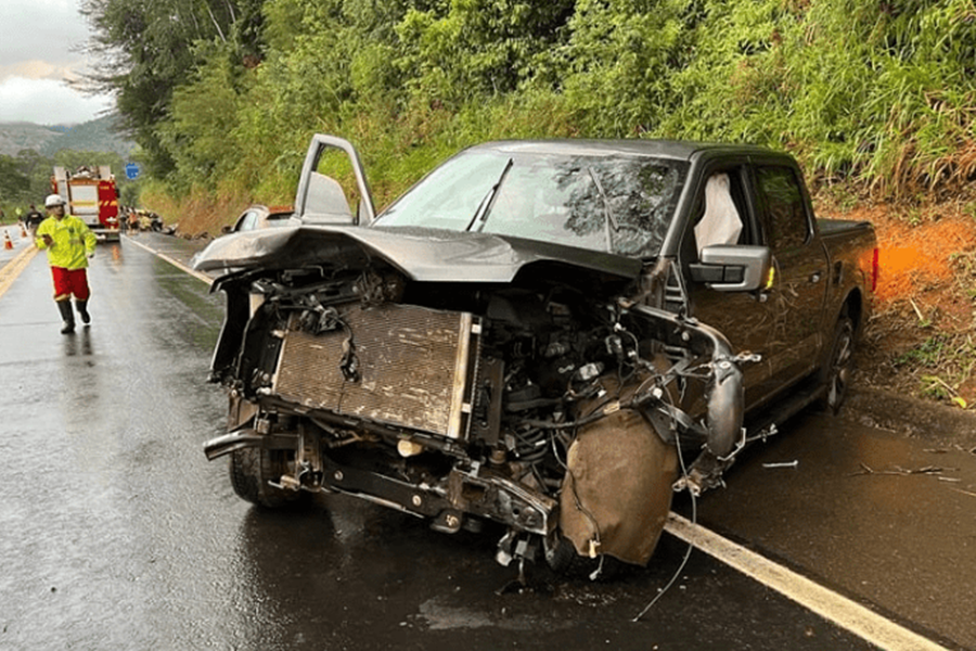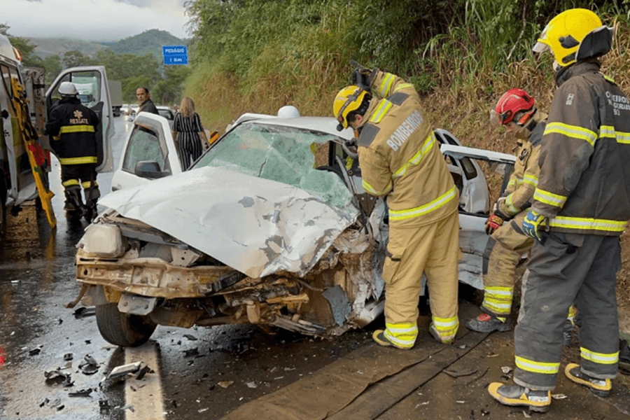 Acidente entre carro e caminhonete deixa dois feridos na BR-116 em Muriaé