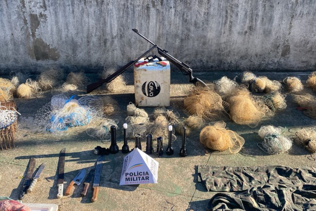 A ação ocorreu nesta quinta-feira, 22 de maio, após denúncias sobre a existência de um acampamento com diversos indivíduos realizando caça ilegal e pesca predatória com uso de armas de fogo e cães.