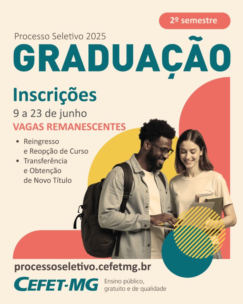 A Coordenação de Processos Seletivos (Copeve) do CEFET-MG divulgou edital do processo seletivo para a entrada nos cursos de graduação oferecidos pela Instituição. Ao todo, estão sendo ofertadas 634 vagas para ingresso nos campi de Belo Horizonte (Nova Suíça e Nova Gameleira), Contagem, Curvelo, Leopoldina e Varginha. As inscrições estão abertas até o dia 15 de julho.