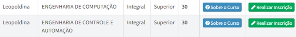 A seleção é destinada aos candidatos que concluíram o ensino médio ou equivalente e que realizaram uma das dez últimas edições do Enem. Estão disponíveis 30 vagas para Engenharia da Computação e 30 para Engenharia de Controle e Automação.