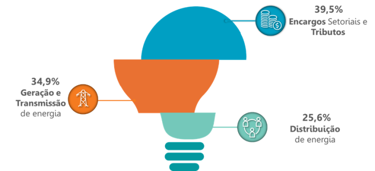 Veja abaixo como fica a composição da conta para os consumidores da Energisa Minas Rio, onde fica claro que o valor que fica com a Energisa Minas Rio é a menor parcela da conta, para fazer frente a toda a estrutura operacional, de atendimento aos clientes e de gestão que a empresa disponibiliza para prestar seus bons serviços, atestados pelos próprios clientes.