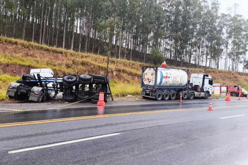 Uma carreta que transportava um tanque contendo ácido acrílico tombou na manhã desta quarta-feira, 2 de juho, e mobiliza o Corpo de Bombeiros no km 661 da BR-116, em São Francisco do Glória.
