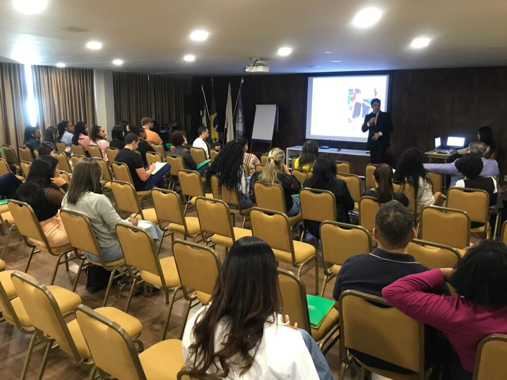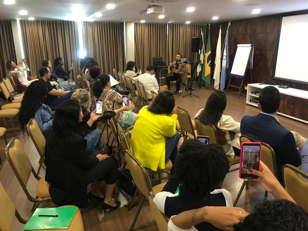 O Musicoterapeuta Clínico Luan Carlos, concluiu o ciclo de palestras ao apresentar o tema “As contribuições da Musicoterapia para o Neurodesenvolvimento”. Luan Carlos Silva Oliveira é Educador Musical e Facilitador de Práticas Sonoro-Terapêuticas, Licenciado em Música com habilitação em bateria pela Universidade Vale do Rio Verde (2022), Especialista em Musicoterapia com Registro na APEMEMG (Associação de Profissionais e Estudantes de Musicoterapia de Minas Gerais) e atua em atendimentos particulares e por convênio no Instituto de Gastroenterologia Dr. Luiz Cabral. Desde 2018, é Professor e Coordenador de área no Conservatório Estadual de Música Lia Salgado, onde desenvolve projetos pedagógicos e ações culturais.