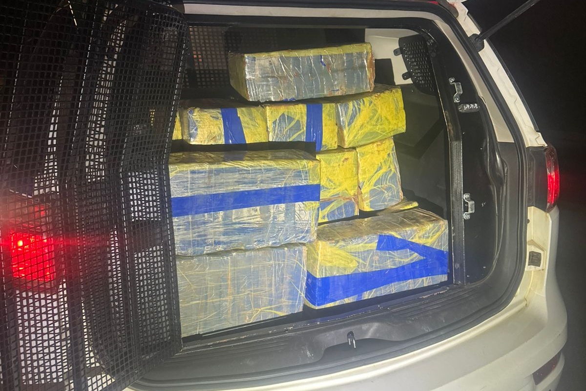 No interior do carro, foram encontradas as 456 barras de maconha, dois celulares e R$ 167,20 em dinheiro.