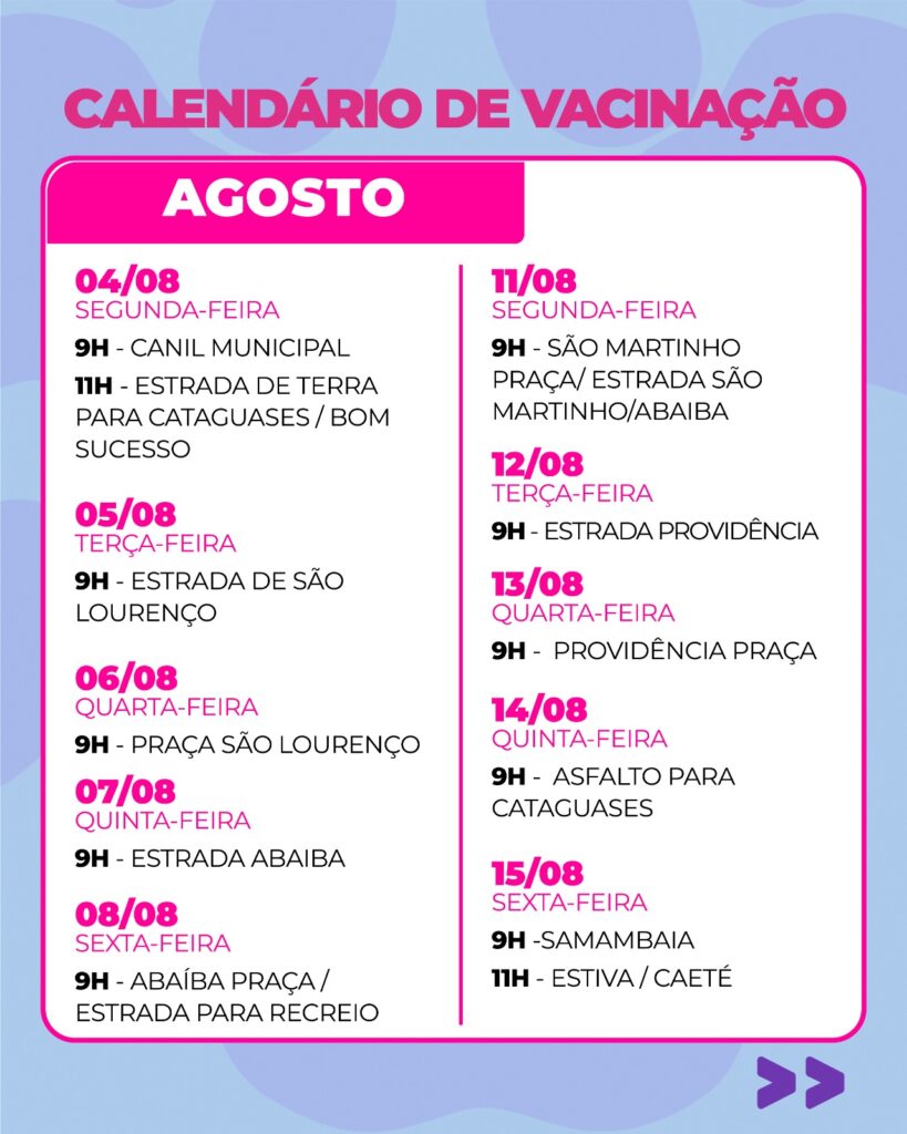 Ação começa no dia 4 de agosto com o objetivo de imunizar cães e gatos em todo o município.