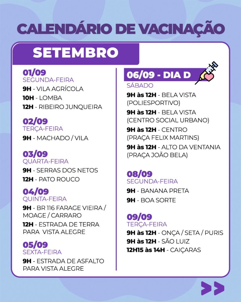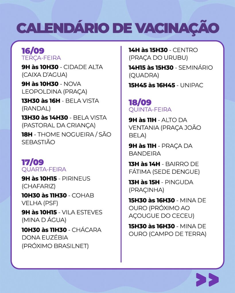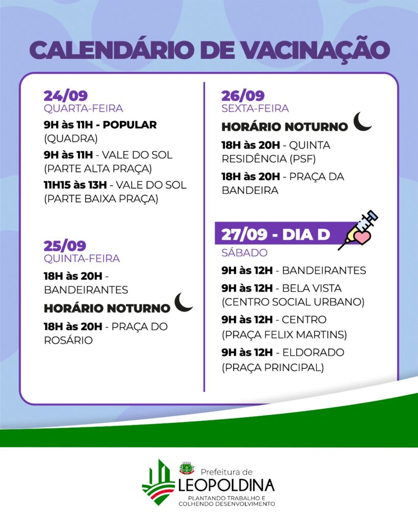 A ação, que se estende até o dia 27 de setembro, contará com mais de 60 pontos de vacinação espalhados por Leopoldina, atendendo diferentes regiões em dias e horários variados. Para facilitar o acesso da população, serão realizados três atendimentos em horário noturno, além de dois grandes Dias D: um no sábado, dia 6 de setembro, e outro no encerramento da campanha, em 27 de setembro.