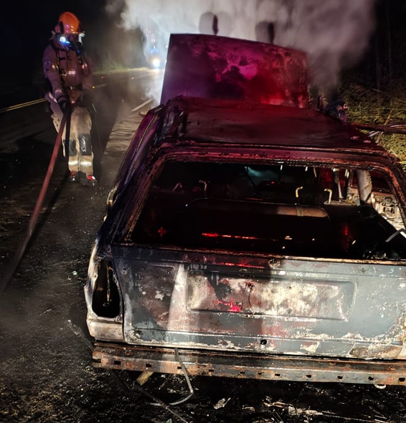 Um carro pegou fogo e mobilizou equipes do Corpo de Bombeiros na BR-267 próximo ao município de Bicas. A ocorrência foi registrada na noite desta quinta-feira, 24 de julho, na altura do km 82,5.