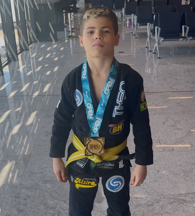 Theo Garcia, 9 anos, atleta de Jiu-Jitsu do mestre Fábio Gaúcho, da prestigiada Academia de Jiu-Jitsu Genesis Brasil, desde que levou Leopoldina aos pódios internacionais durante o campeonato europeu da modalidade na Itália, no último dia 18 de maio, segue se destacando por sua dedicação e representatividade no esporte.