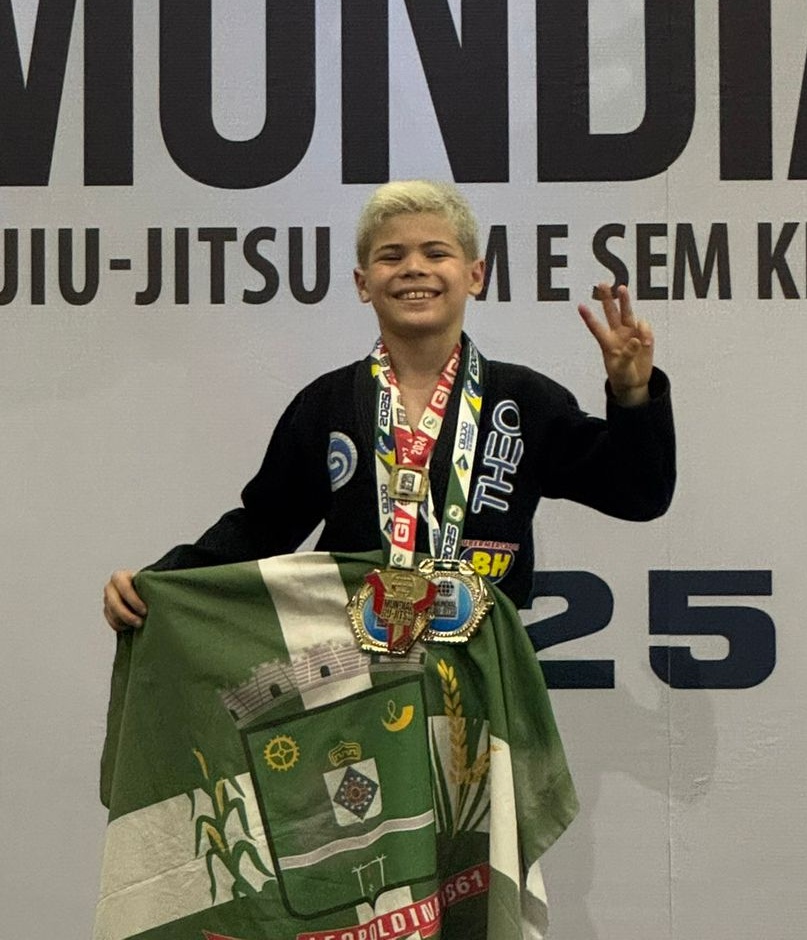 O jovem leopoldinense Theo Garcia, 9 anos, sagrou-se Tricampeão Mundial pela Confederação Brasileira de Jiu-Jitsu Olímpico (CBJJO), no domingo, dia 31 de agosto, em evento realizado no Estádio Miécimo da Silva, em Campo Grande, Rio de Janeiro.