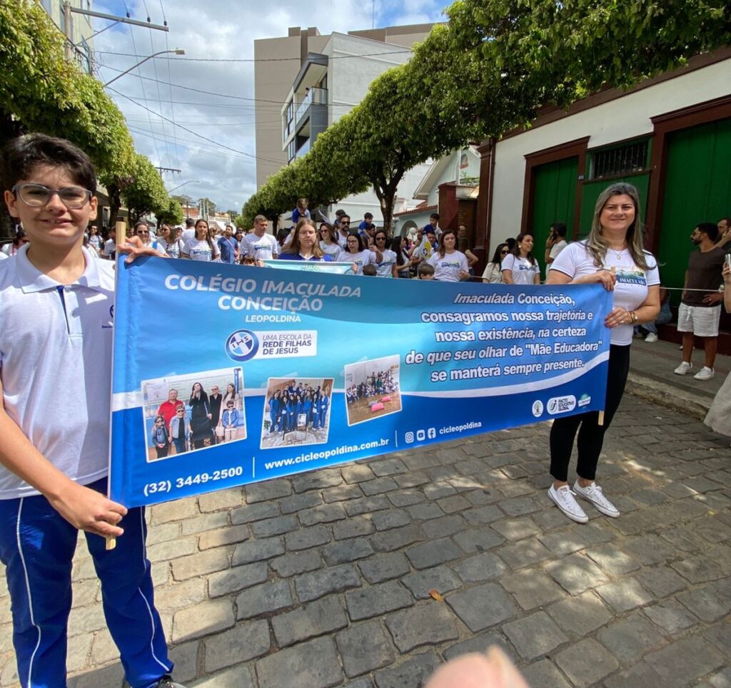 Um momento emocionante marcou o evento: a homenagem aos 107 anos do Colégio Imaculada Conceição, mantido pela Rede Filhas de Jesus, que encerra suas atividades em Leopoldina em dezembro deste ano. A instituição de ensino foi adquirida pelo SESI – Serviço Social da Indústria, que assumirá a direção da escola em janeiro de 2026.