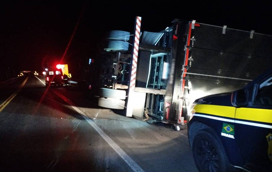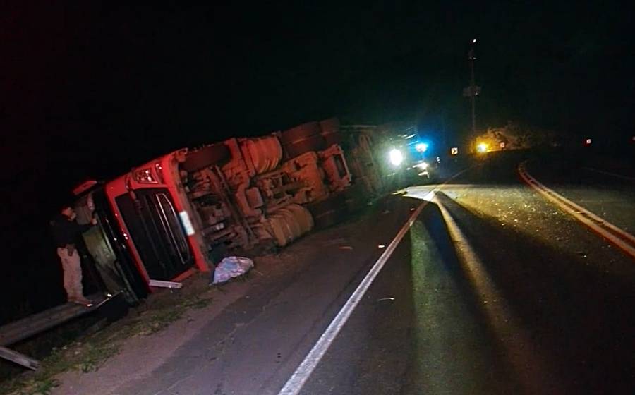 Uma carreta carregada com frutas tombou na noite deste domingo, 28 de setembro, na BR-116, em Leopoldina. O acidente foi registrado no km 770 próximo à entrada da Boa Sorte.