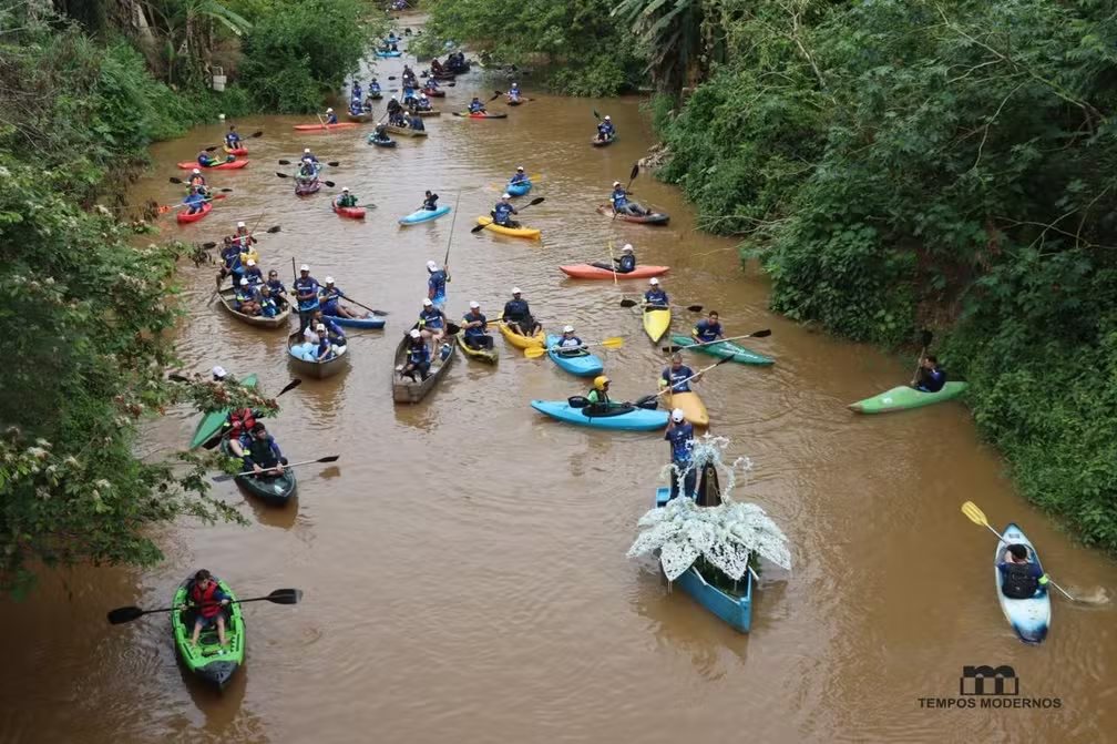 Conforme ela, são 26 anos de celebração, iniciada quando um grupo de seis amigos se reuniu para fazer a limpeza do rio. “O pessoal das fazendas e alguns pescadores locais se reuniram, aproveitando justamente a data do dia 12, quando Nossa Senhora foi encontrada nas águas. Hoje, a canoagem virou um evento grandioso”, disse.