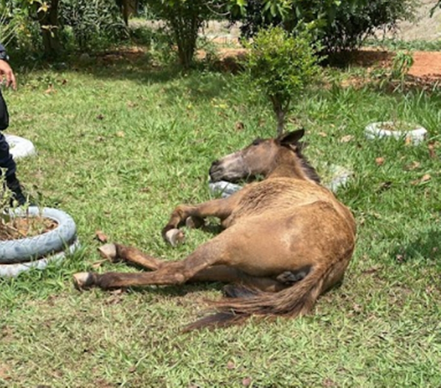 No endereço indicado, os agentes encontraram o animal deitado, debilitado, sem acesso a água e exposto ao sol e à chuva, apresentando escoriações nas patas e sinais de desnutrição. Segundo moradores, o cavalo estava naquela condição desde o último sábado (11).