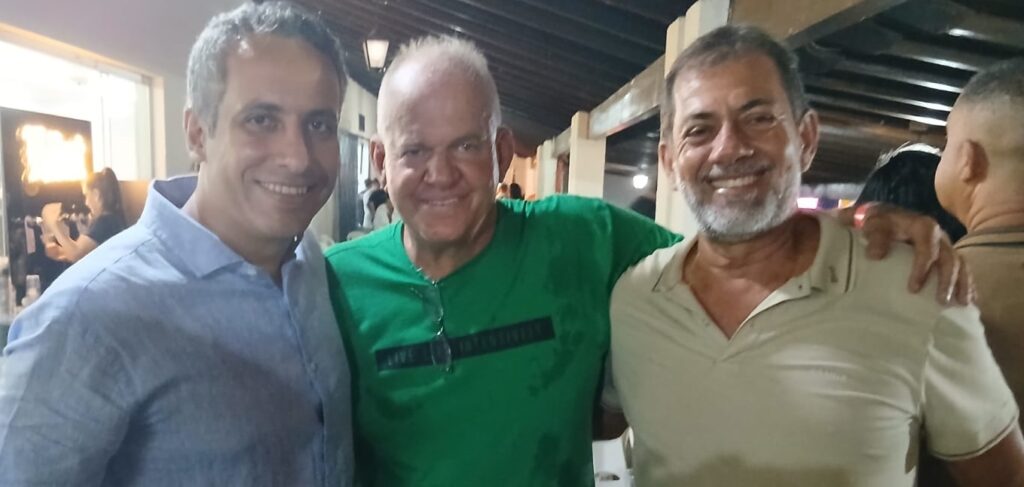 Paulo Roberto Filho (Paulinho), de Muriaé, e o vereador Waldair Costa com este colunista.