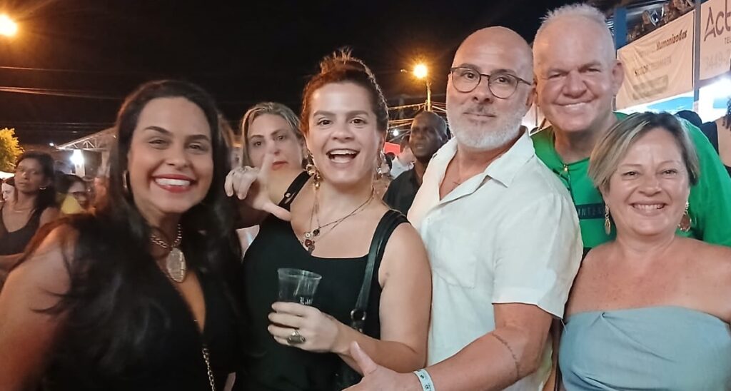 Grupo animado: A psicóloga Mariana, artista plástica Camila Pereira e o casal Ana Cristina (Tininha) e o vereador Vinícius Madaleno.