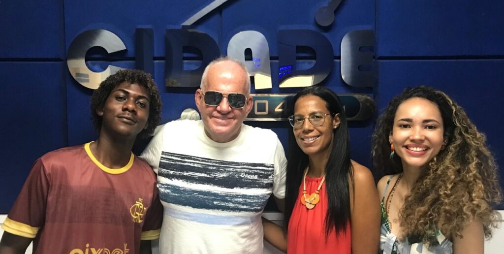 Sábado pela manhã, participei de entrevista no programa Conexão Rádio Cidade / Jornal O Vigilante Online, com Júlio Cesar Martins. Comigo, Dani Guimarães, Mara Max e Nicolas, do Projeto Musical desenvolvido pelo grupo Som das Sete, que no próximo dia 25, sábado, se apresentará no Bela Vista, em Leopoldina, em frente ao campo de futebol do Bairro. Imperdível.