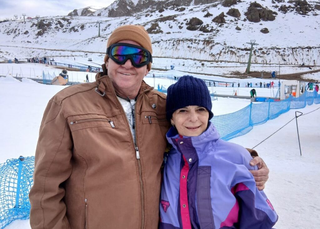 Nas férias de julho, tive a alegria de conhecer as montanhas Farellones, em Santiago do Chile, na sempre boa companhia da esposa Filó Gorrado (Foto).