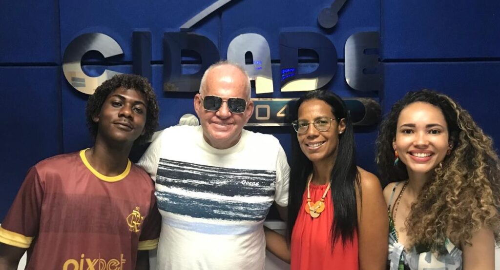 Neste sábado, dia 25 de outubro, o bairro Bela Vista se transforma em palco para um dos eventos mais significativos do calendário cultural de Leopoldina, o “Som das Sete Canta a Consciência Negra”, a partir das 18h. No palco os vocalistas Dani Guimarães, Antônio Jorge Magalhães e Eliakim Gomes, na bateria Hueder Oliveira, no contra-baixo Alex Oliveira e na Guitarra: Tiago Cruz. No teclado: Nicollas Paschoal. A atração conta na Produção Artística com Mara Coelho Maximiano, na Produção Técnica Ricardo Oliveira e a Proponente é Danielle (Dani) Guimarães. No Click Destaque, registro feito durante entrevista na Rádio Cidade FM 104,3, ao lado deste colunista, Dani, Mara Maximiano e Nicollas, no sábado (18).