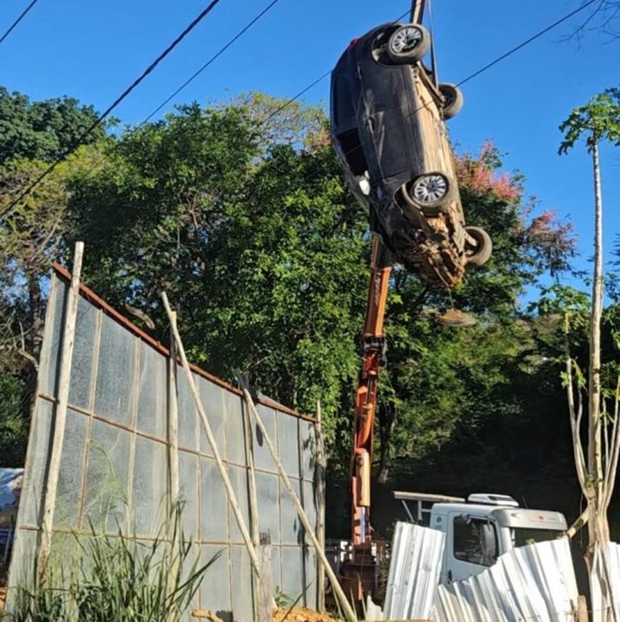 Veículo capota e para em posição vertical após perder o freio em Cataguases