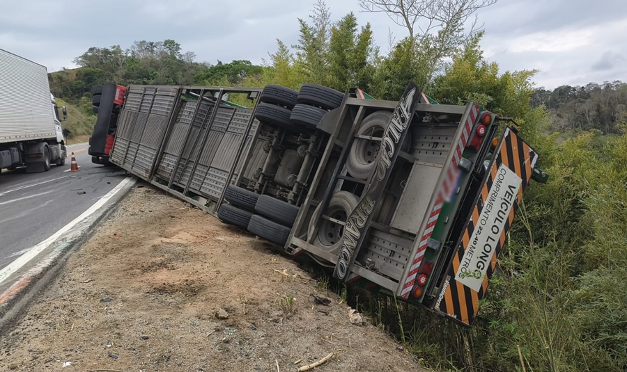 A pista permaneceu liberada, mas exige atenção redobrada até a remoção do veículo acidentado. As causas do tombamento ainda serão apuradas pela PRF.