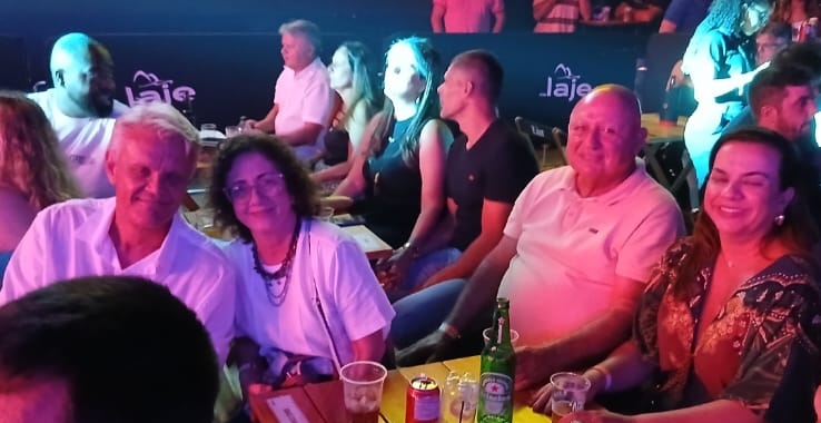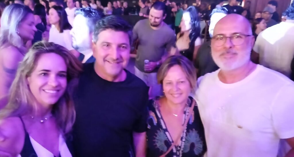 O casal Larissa e Felipe (Fonte Fruti), Pedro Augusto (Semar), este colunista e Maithê Néder com o namorado Murilo.