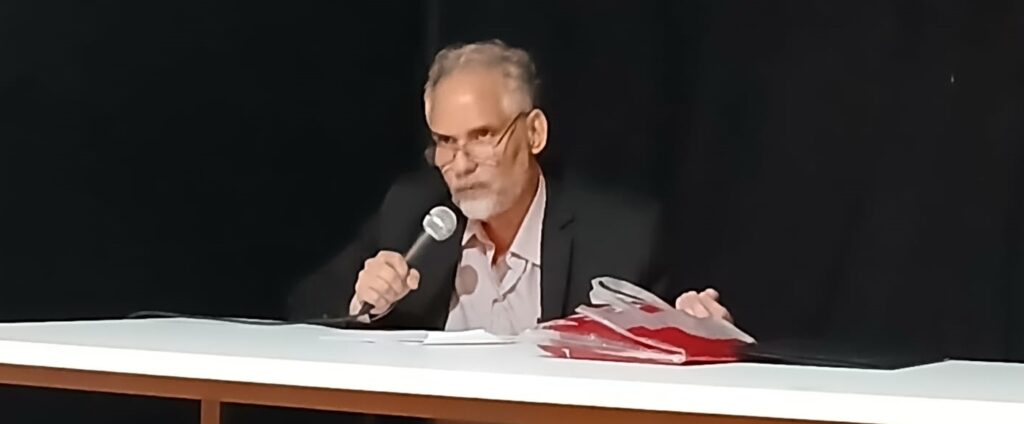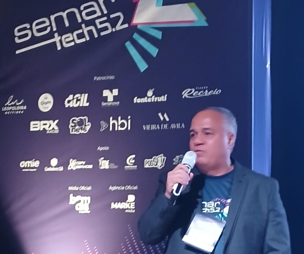 Prof. Edvaldo Nunes, de Curitiba, durante sua apresentação no Recanto do Lago – Semar tech 2025.