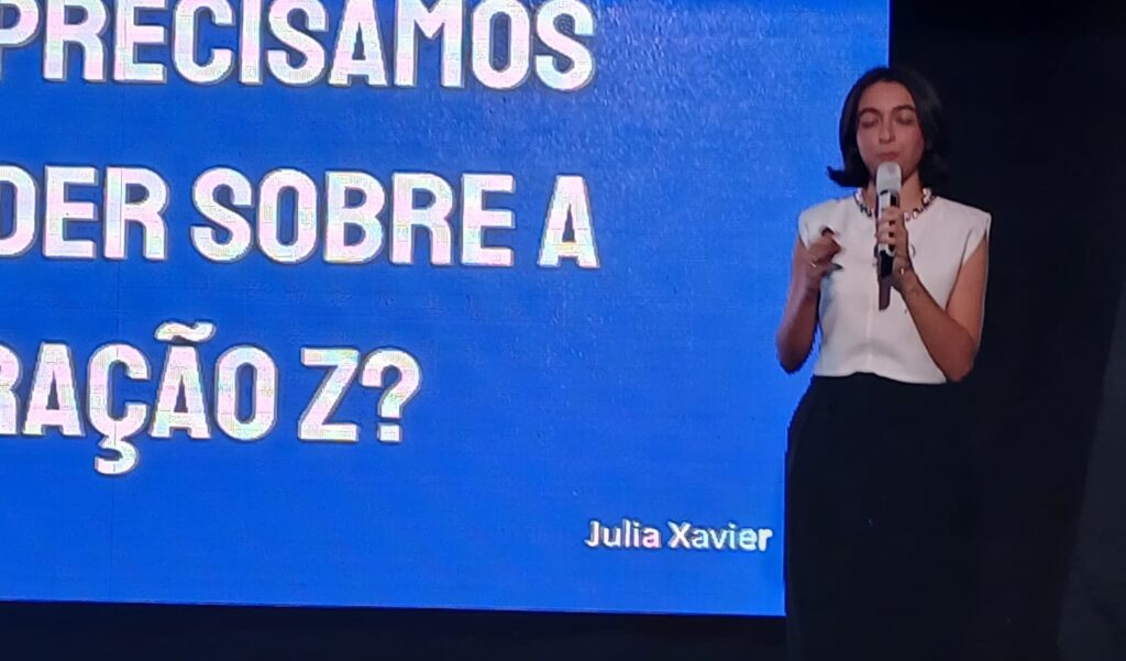 Júlia Xavier, brasileira que reside em Paris, durante sua palestra.