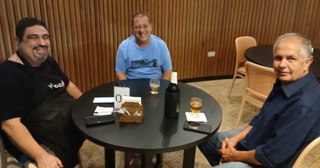 Direto do “Mondo Japa Grill”, em Lelê: Encontro de amigos – Paulo Afonso recepcionando Luiz Henrique Vilas e Marcinho.