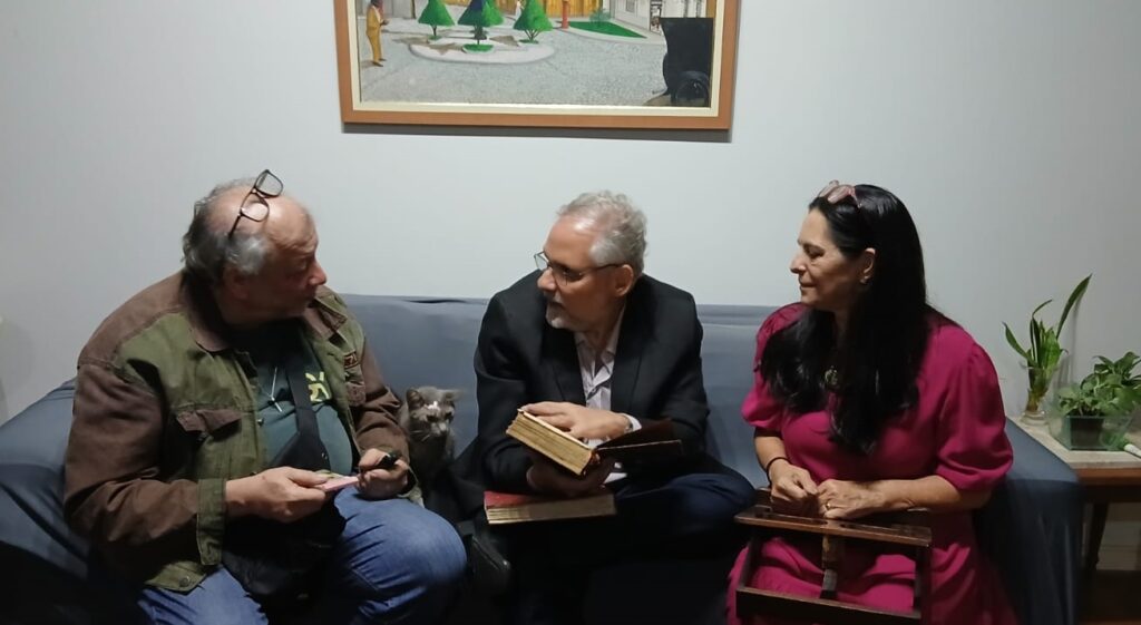 Alexei Bueno durante entrevista ao Jornal O Vigilante Online, observado por Filó Gorrado.