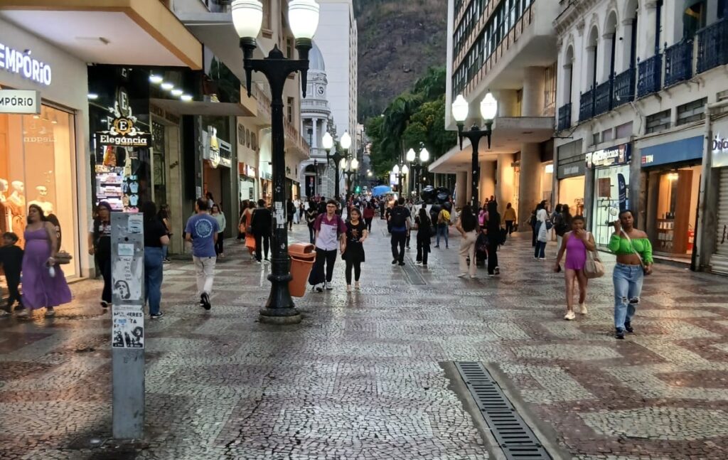 Fim de tarde no famoso Calçadão da Halfeld, em Juiz de Fora.