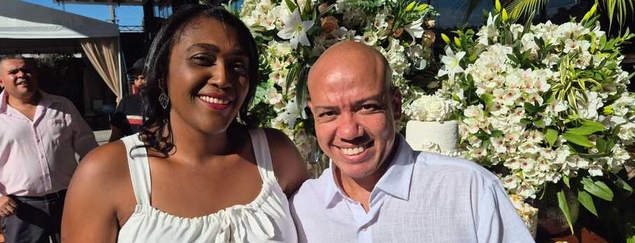 Hosana da Silva Jacob dos Santos e Jorge Luís Faria Duarte comemoraram o fato de ter, pela 1ª vez, uma cerimônia para marcar a vida a dois oficialmente.