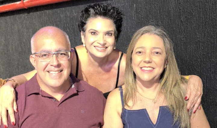 Pedro (Elétrica Leopoldinense) e Gisele, num click destaque com a companhia de Marilda.