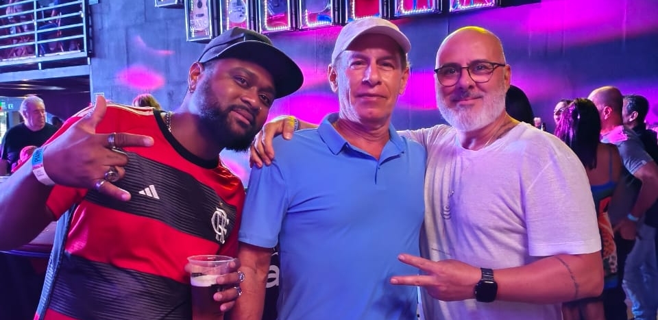 Piano Rock: Momento antes de sua apresentação, o encontro dos artistas com o empresário Ricardo Barros Mendes.