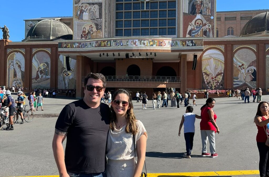 O vereador leopoldinense José Augusto Cabral e Dra. Bárbara, em Aparecida – SP.