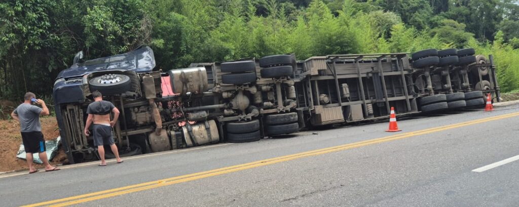 O tombamento exigiu atenção redobrada dos motoristas que passavam pelo local. As causas do acidente serão apuradas pela Polícia Rodoviária Federal.