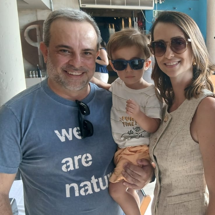 Advogado Alessandro Rubim com o filhão Gabriel e a esposa Adriana Bártoli (Santander), prestigiando a confraternização.