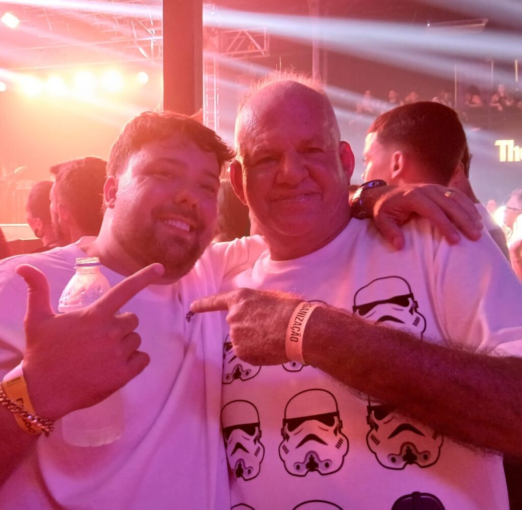 Marcelo Falcão saudou o público da Stone House, em Leopoldina. Um momento especial, afinal, este foi o primeiro show do artista após o joelho “novo”. Em maio de 2025, ele precisou imobilizar a perna após romper ligamentos do joelho durante uma apresentação no Rio de Janeiro.