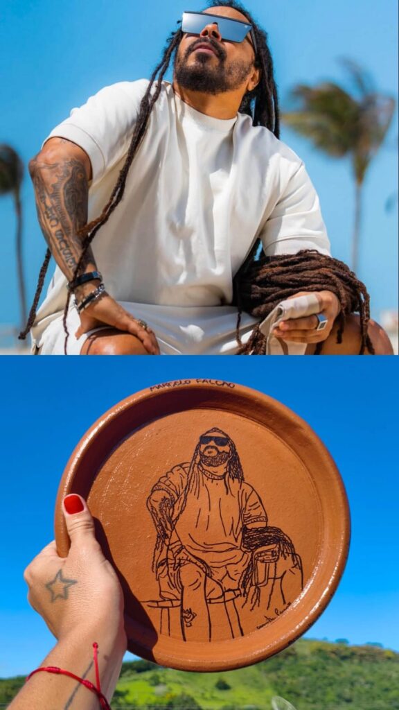 Falcão recebeu a homenagem da artista leopoldinense Camila Pereira, com seu trabalho artesanal em ceramica.