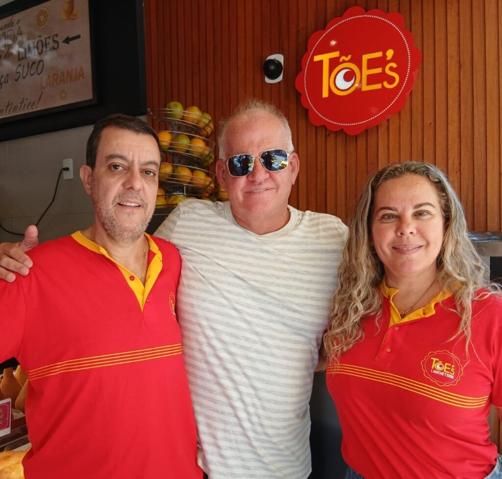 Recepcionando este colunista, o casal Antônio Carlos de Oliveira Silva (Tõe) e Karina Pires Policiano e Silva, proprietários da “Tõe’s Lancheteria”, na Ribeiro Junqueira, 19.