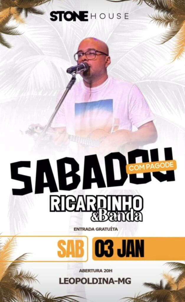 Sabadou com pagode: dia 3 de janeiro teve Ricardinho & Banda na Stone House, em Leopoldina, com entrada gratuita.