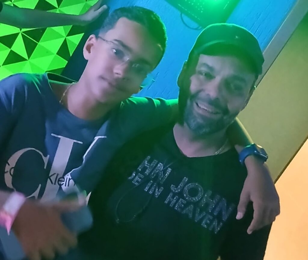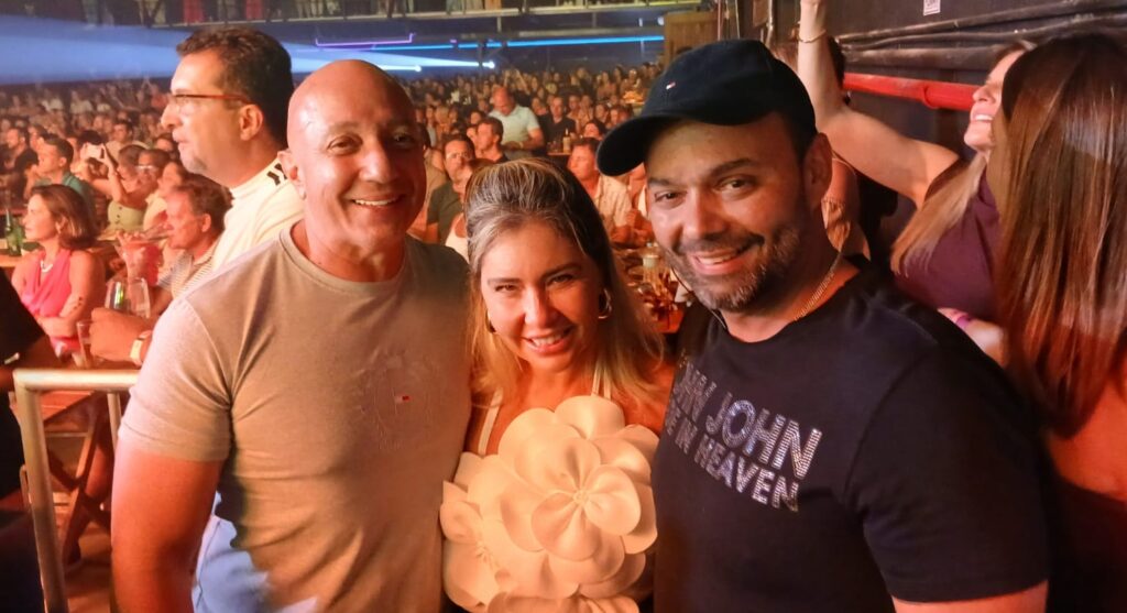 Ricardinho Barros Mendes com o amigo Ivaldo Freitas, empresário no Rio de Janeiro, e Gabriela.