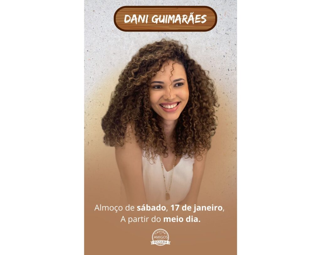 Dani Guimarães, no sábado (17), ao meio-dia, na Cantina dos Amigos. acompanhada por Naná e Bruno – o melhor repertório de samba.