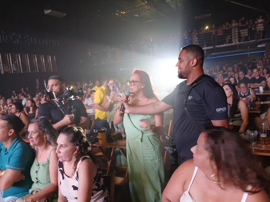 A empolgação dos artistas do Roupa Nova, interagindo com a plateia que prestigiou a promoção da Stone House, E-M-O-C-I-O-N-O-U.